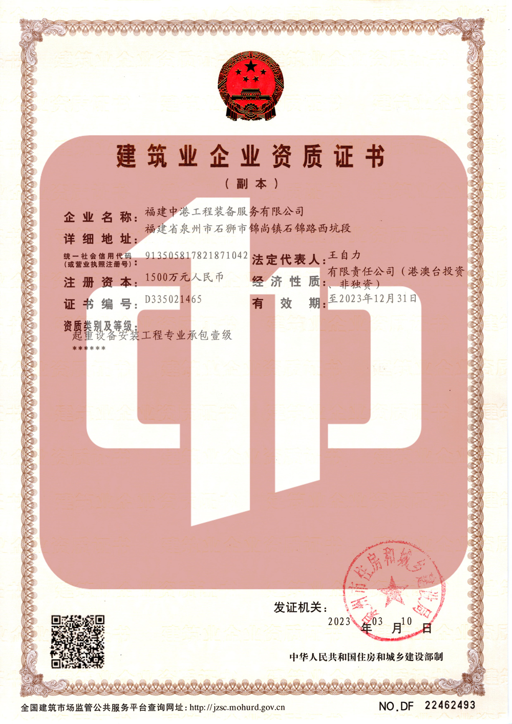 起重設(shè)備安裝工程專業(yè)承包壹級(jí)
